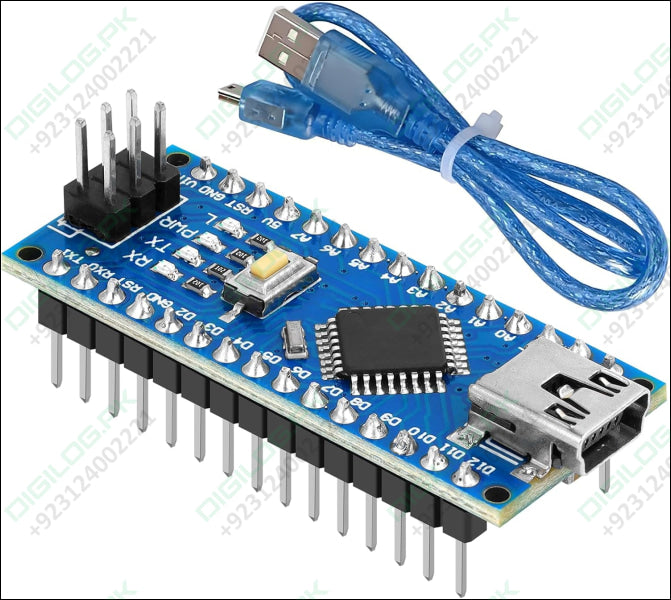 If you are lookin for Arduino Nano v3 price in pakistan, you are on the right place. Digilog.pk offers you best price of Arduino Nano v3. Arduino Nano with nano cable is small, complete, and breadboard-friendly board based on the ATmega328 (Arduino Nano 3.x) or ATmega168 (Arduino Nano 2.x). It has more or less the same functionality of the Arduino Duemilanove, but in a different package. It lacks only a DC power jack, and works with a Mini-B nano cable instead of a standard one.
