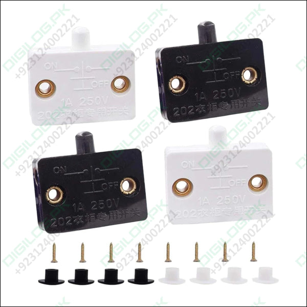 This Cabinet Door Switch is a versatile white pressure switch designed for automatic lighting control in kitchen cabinets, wardrobes, and furniture in Pakistan. Supporting multiple voltages (12V, 24V, and 230V AC), this push-button door switch automatically turns lights on when the cabinet door opens and off when closed. The compact white housing includes mounting screws and hardware for easy installation in kitchen cabinets, closets, and display cases.