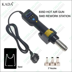 Professional-grade SMD rework station with precise temperature control and anti-static protection for delicate electronic components. The KADA 835D combines portability with advanced features for reliable soldering, desoldering, and reflow work.
